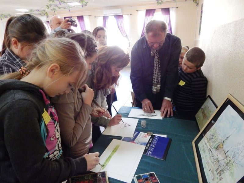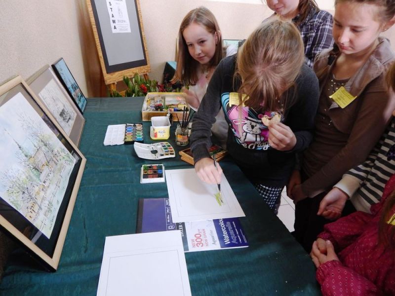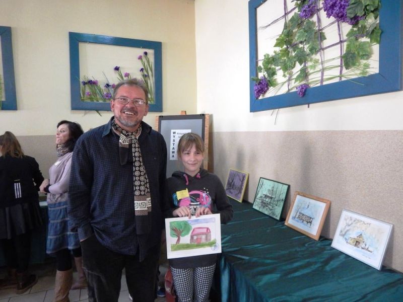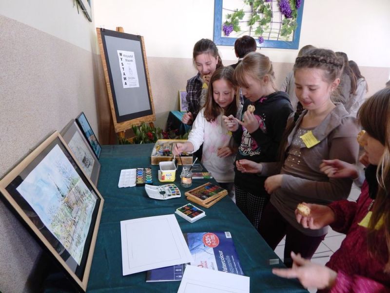 Niezapomnianym przeżyciem było spotkanie z panem Krzysztofem Miazkiem - artystą malarzem, twórcą Galerii artystycznej w Górecku Kościelnym, regionalistą i gawędziarzem. W swoim wystąpieniu artysta podkreślił, iż warto znaleźć czas na rozwijanie swoich pasji. Największą frajdę sprawiło dzieciom malowanie akwarelami na specjalnym papierze pod kierunkiem artysty. Pan Krzysztof pokazał również technikę malowania węglem, która cieszyła się wielkim zainteresowaniem.
