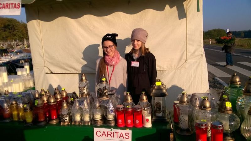 Zbliża się Święto Zmarłych... Dzień Wszystkich Świętych to czas zadumy, refleksji i pamięci o naszych bliskich zmarłych. Na cmentarzu można spotkać ludzi porządkujących rodzinne mogiły. Niestety są również groby, o których nikt nie pamięta. Zaniedbane, porośnięte trawą, wzbudzają refleksję o ludzkim losie. Czy rzeczywiście ci ludzie nie mają biskich? Szacunek do ludzi można okazać poprzez pamięć o zmarłych. Na przełomie października i listopada wolontariusze Szkolnego Koła Caritas ze Szkoły Podstawowej im. Jana Pawła II w Majdanie Nepryskim wzięli udział w akcji „Znicz”, sprzedając znicze i wiązanki przed cmentarzem katolickim w Józefowie. Sprzedaż zniczy odbywała się także przez cały tydzień w naszej szkole. Byliśmy szczęśliwi, że mogliśmy wyświadczyć dobro dla bliźnich.